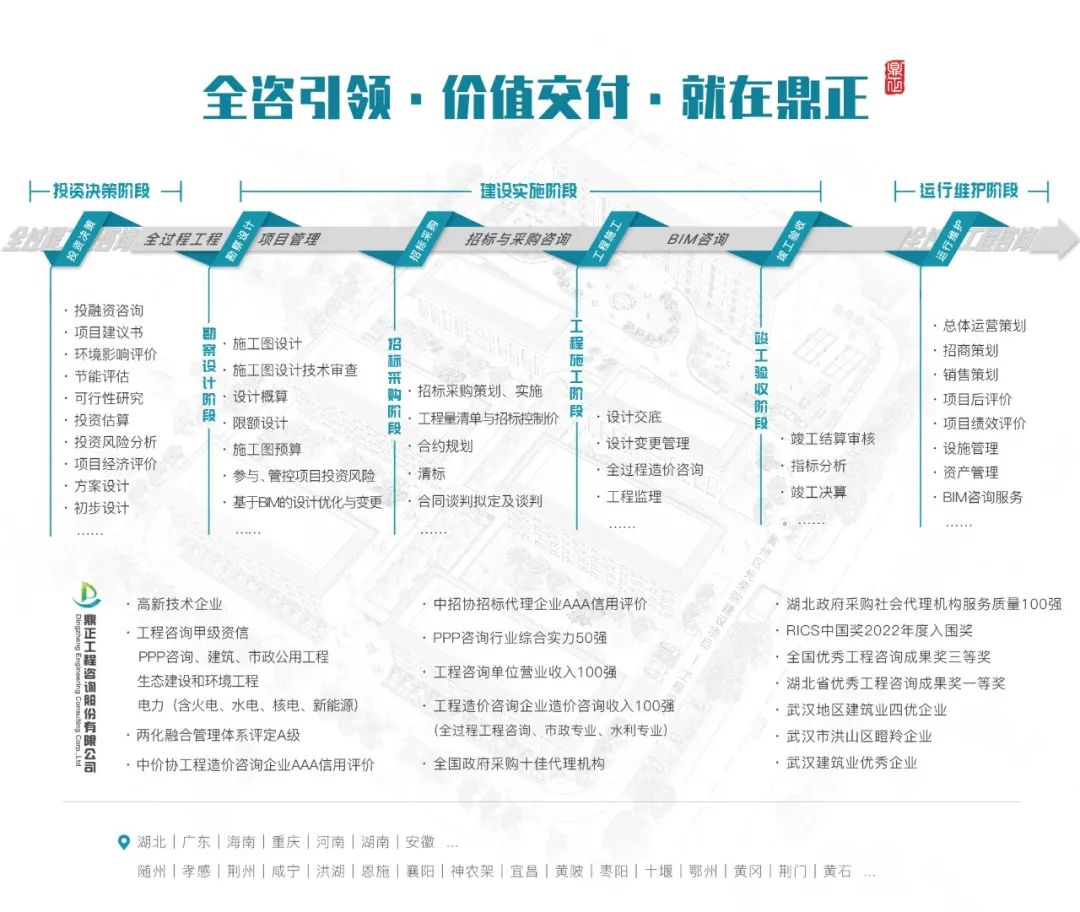 大悟縣宣化店旅游名鎮建設PPP項目開創湖北省全過程工程咨詢之先河,榮獲“2018年度全國優秀工程咨詢成果獎”三等獎,同時入選第一批省級示范項目、第四批國家級示范項目。