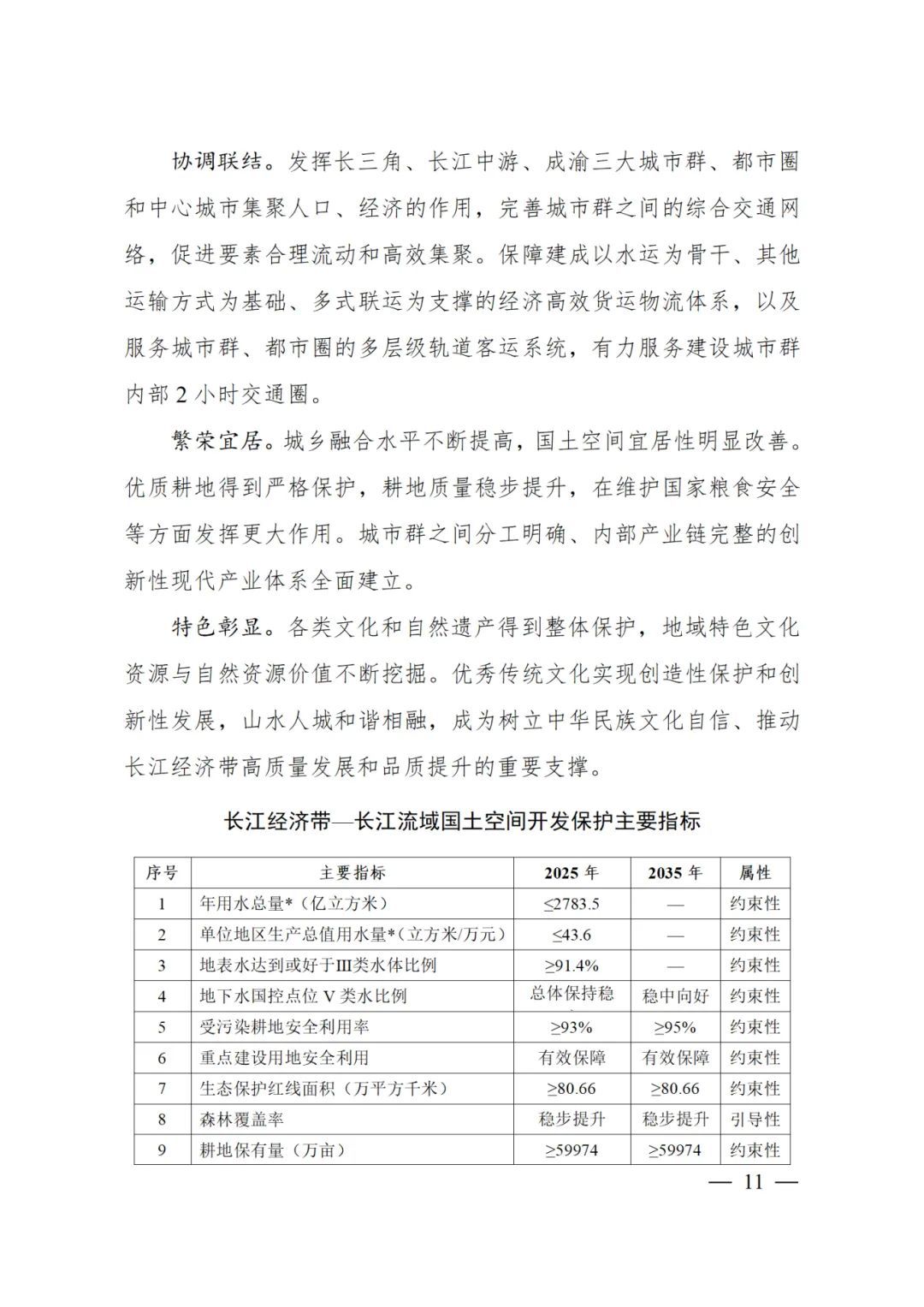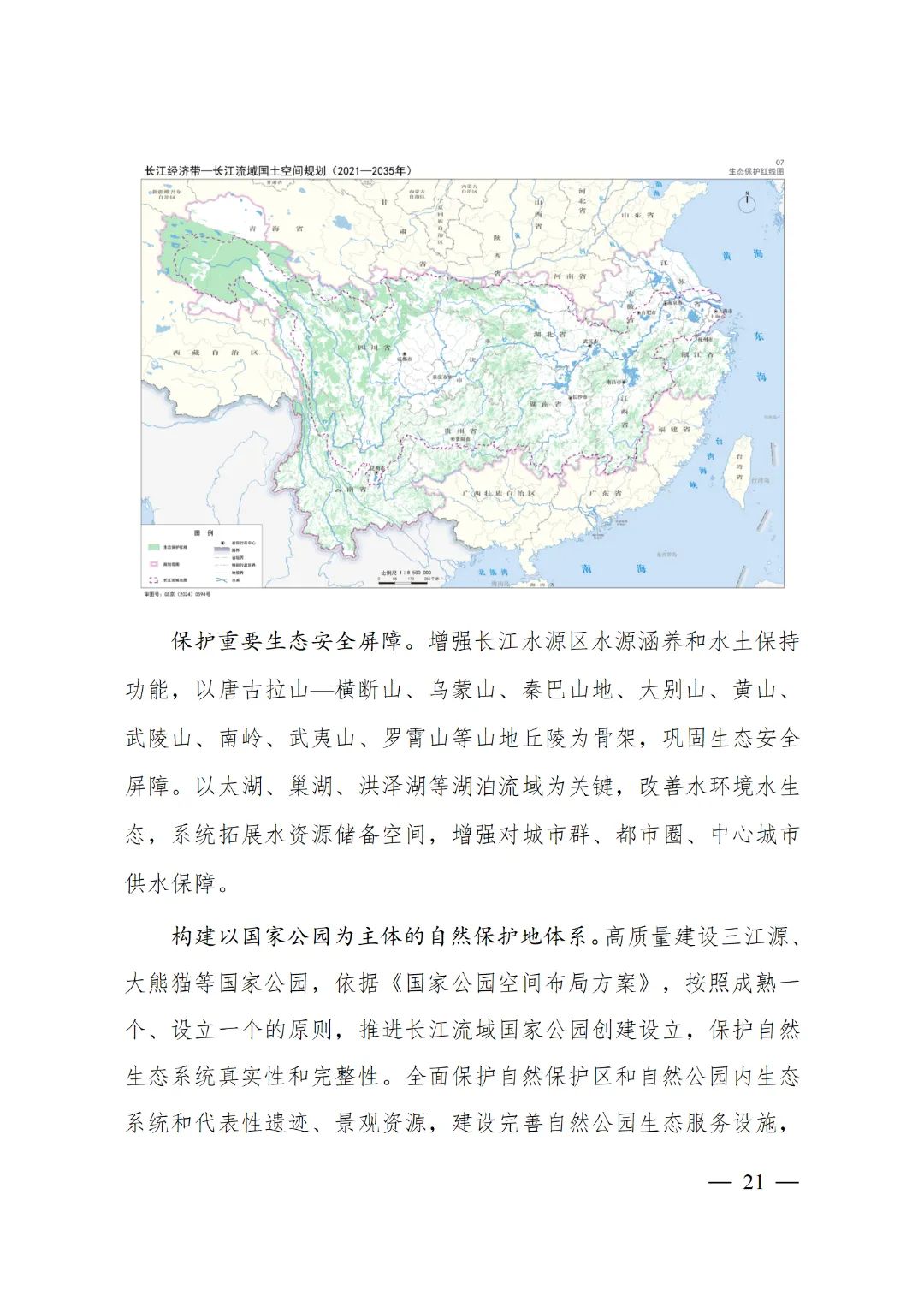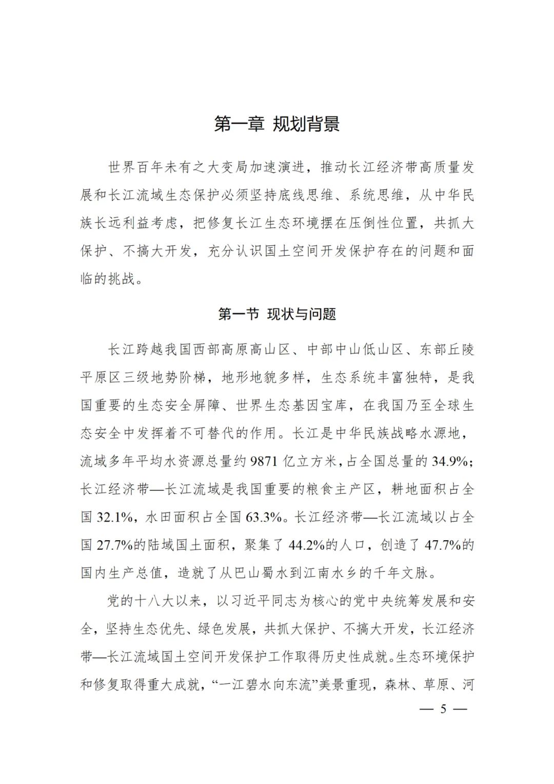 2024年2月9日,《長江經濟帶—長江流域國土空間規劃(2021—2035年)》經國務院批復同意。9月10日,自然資源部正式印發《長江經濟帶—長江流域國土空間規劃(2021—2035年)》。規劃范圍包括長江經濟帶11個省(市)全域,以及《長江保護法》規定的長江流域其他8省(區、市)的相關縣級行政區域,共計1173個縣級行政區域。規劃范圍包括陸域國土和內水、領海。其中,陸域面積240萬平方公里。(后附規劃范圍詳細表格)規劃期限為2021年至2035年。