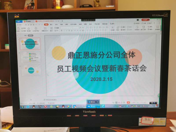 2020年2月15日下午三點(diǎn),受疫情的影響,鼎正恩施分公司通過(guò)視頻會(huì)議的形式,召開(kāi)了全體員工視頻會(huì)議暨新春茶話會(huì),即使大家沒(méi)有以面對(duì)面的方式參與這次會(huì)議,但是也能夠通過(guò)網(wǎng)絡(luò)與大家零距離地分享自己在這個(gè)特殊春節(jié)的所見(jiàn)所聞與個(gè)人經(jīng)歷。