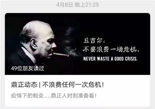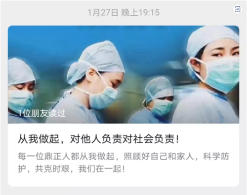 在疫情爆發(fā)之始,鼎正公司領(lǐng)導(dǎo)高度關(guān)注疫情動態(tài),辦公場所每日消毒,周密防控。在封城之時,呼吁全體同事安心在家做好防疫,不給社會增加負(fù)擔(dān)。