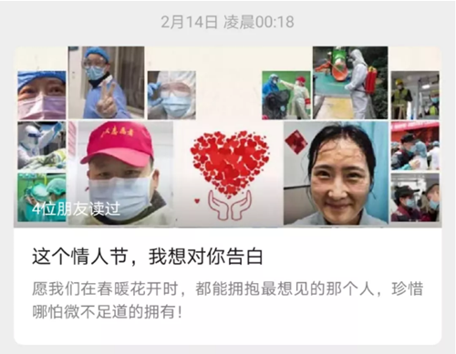 2月14日情人節(jié),我們向全國各地奮戰(zhàn)在一線從未后退的醫(yī)護(hù)工作者、各條戰(zhàn)線上的志愿者、堅守崗位的工作者們告白。希望通過這篇短文傳遞的正能量,牽動我們把更多的大愛之心傳播到社會的每一個角落。